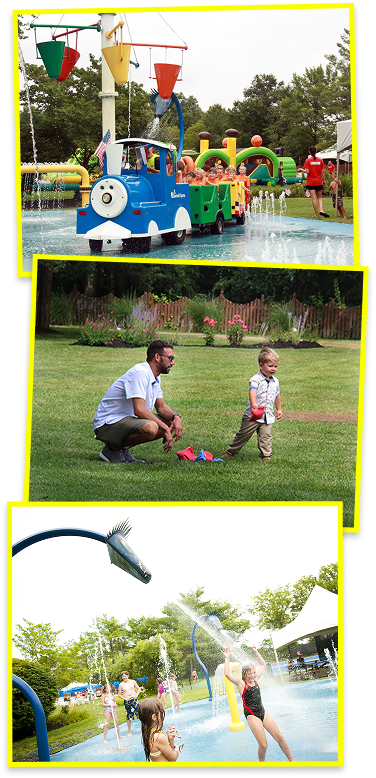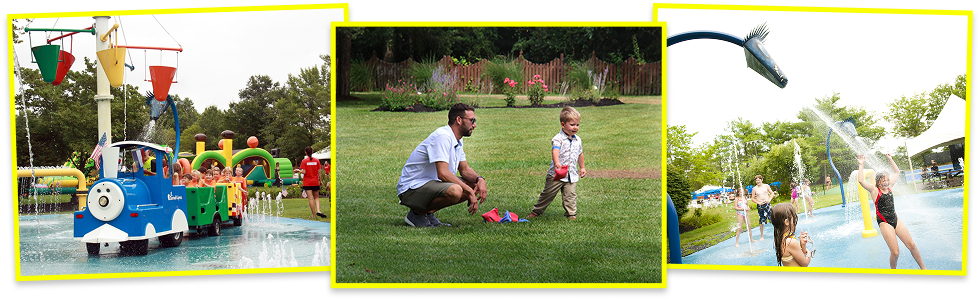 Cooling crazy splash park featuring: dumping buckets, snorting & spraying magic dragons, underground geysers & surprise sprays.