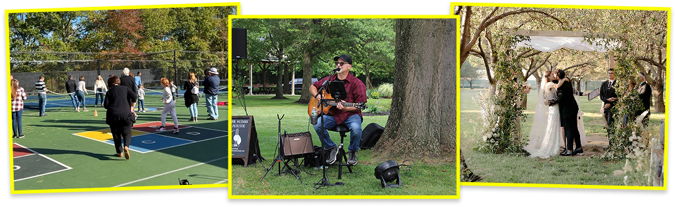 Pickleball courts, basketball courts, volleyball, baseball, softball, soccer, shuffleboard, horseshoes, and more